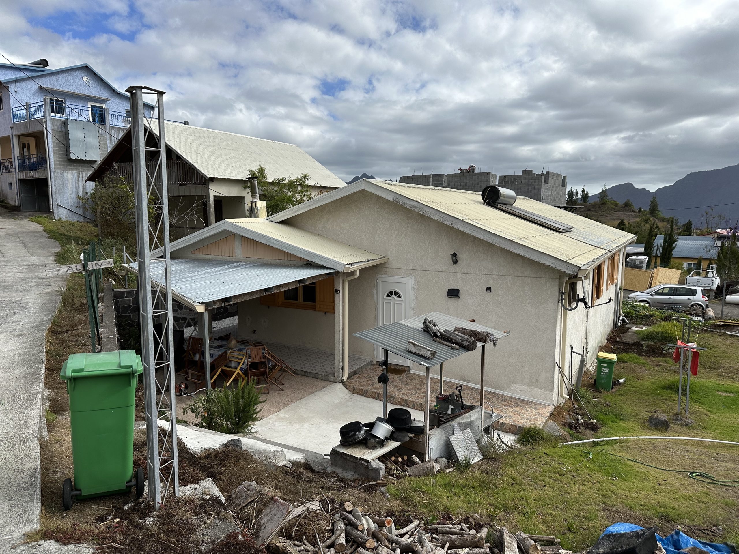 Nach etwa zwei Stunden Aufenthalt starten wir wieder den Aufstieg zurück zum Auto. Nach dem Talboden, als der steile Anstieg beginnt, trennen sich Eva’s und meine Wege vorerst, denn ich beschließe ein ordentliches Training aus dem Aufstieg zu machen und zieh ihr folglich davon. Oben ohne und mit hoher Herzfrequenz pushe ich mich an meine Grenzen und bin trotz Rucksack in einer guten Stunde wieder komplett oben. Dort freue ich mich sehr auf’s Auffüllen meines Wasservorrats und schwitze noch aus, ehe Eva auch nach nur in Summe 1,5h Aufstiegszeit bei mir ankommt. Wir legen uns noch beide kurz auf eine Mauer zum Rasten, ehe wir ins Auto einsteigen und weiterfahren. Unser nächstes Ziel ist der Cirque Cilaos. Der südwestliche Krater bzw. die Stadt im Krater, die von außen jedoch mit Straße erreichbar ist. Dafür müssen wir zuerst wieder ans Meer fahren, ehe wir eine Bergkette weiter nördlich hineinfahren in das gewaltige Kratergebiet. Die Straße ist sehr imposant in tiefe Schluchten gebaut und zum Teil sehr Felssturzgefährdet. Ich räume auch einen ~50kg Brocken aus dem Weg. An manchen Stellen ist die Straße auch nur einspurig und die Autofahrer warnen sich gegenseitig mit Hupen. Auch zwei sehr schmale, einspurige Tunnel gibt es am Weg. Wir bewundern nicht nur die Landschaft sondern auch einen Busfahrer, welcher einen normalgroßen Bus über die Straße bewegt. Nach einer Stunde Fahrzeit für nur 30km erreichen wir unseren Zielort: Cilaos. Dieses ist inmitten des grünen Kraters auf einer Anhöhe gelegen. Beeindruckend. Wir fahren zu unserer nächsten Unterkunft: Alain, ein etwas älterer Einheimischer, vermietet in seinem Haus drei Zimmer, wovon wir eines für zwei Nächte gebucht haben. Das Bad und Klo sind geteilt, genauso wie die Küche. Für heute Abend kocht er für uns, wir hoffen jedoch, dass wir die Küche dann morgen auch benutzen dürfen/können.