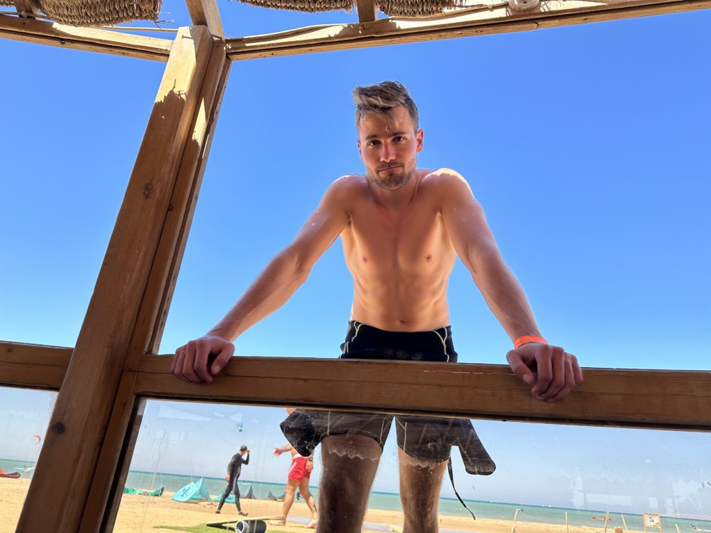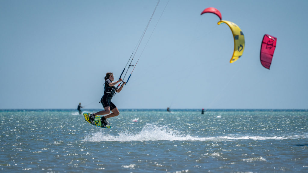 In der Früh genießen wir unseren neuen privaten Balkon in der Morgensonne, ehe die anderen auch munter sind und wir drinnen zusammensitzen. Gegen halb 9 starten wir alle zum KBC, nur Reini fährt zu seiner anderen Kitespotalternative. Dort angekommen sind etwa 12 Knoten und die Station öffnet gerade ihre Pforten. Eva hilft mir direkt unseren größten Schirm aufzubauen, ich werfe mich in Schale und starte tatsächlich als erster ins Wasser. Der Wind ist grenzwertig schwach, sodass ich um jeden Zentimeter Höhe kämpfen muss und der Spaß sich in Grenzen hält. Doch das gesamte Wasser für mich alleine zu haben, kombiniert mit der Tatsache, dass dieses aufgrund der Ebbe sehr glatt ist, hat schon was. Ich drehe meine Runden, ehe ich den Schirm an Eva übergebe und sie bei etwas stärker werdendem Wind auf ihre Kosten kommt. Sie meistert einige Backrolls, incl. Backroll-transition. Sehr beeindruckend – daran sollte ich auch auf jeden Fall üben.