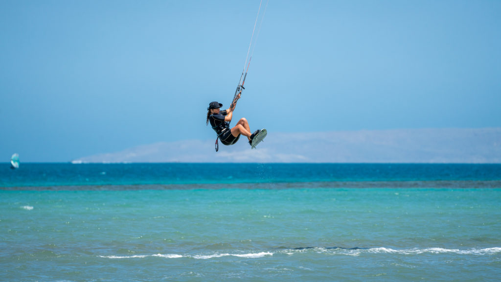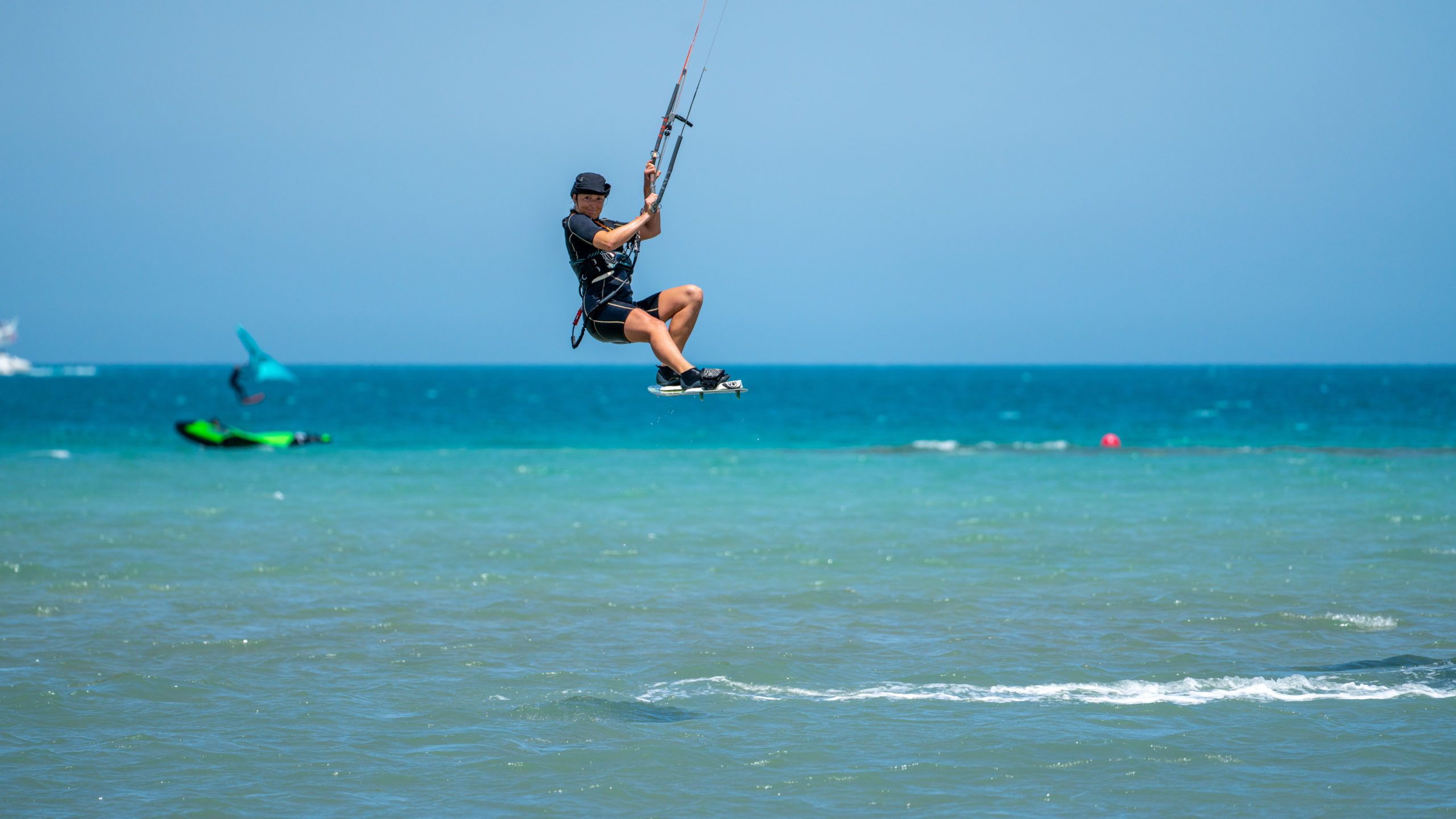 Vom deutschen Kitelehrer haben wir am Vortag den Hinweis bekommen, dass man mit einer App mit der Apple Watch die Kite-Session inkl. Sprungdetails aufzeichnen kann. Das hat Lukas heute gleich ausprobiert, auch wenn der Wind zu schwach war für ordentliche Sprünge, konnte er das bereits testen für bessere Windtage.