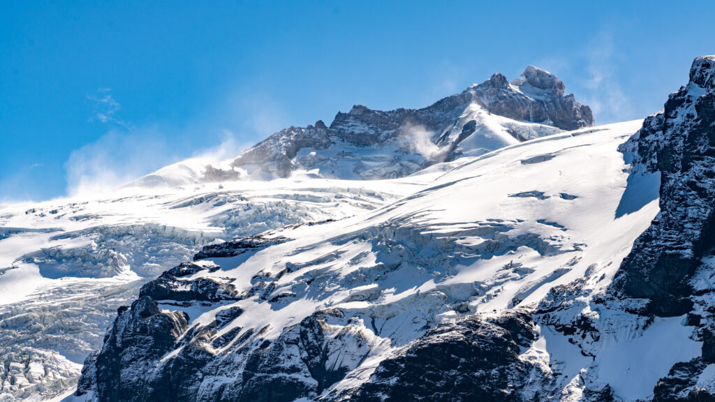 Es hat mittlerweile komplett aufgerissen, nur am Tronador, dem großen Berg vor uns hängen ein paar wenige Wolkenfetzen. Übrigens ist der Name Programm, denn dieser verweist auf Spanisch darauf, dass es öfters donnert und gewaltige Eis- und Wassermassen ins Tal donnern. Während unserer Wanderung und der anschließenden Stunde auf dem Aussichtspunkt, hören wir immer wieder lautes Donnern und sehen manchmal sogar kleine Lawinen. In der Nacht zuvor hat es wohl auch geschneit, was den Prozess vermutlich auch weiter ankurbelt. Beim Restaurant unten befindet sich ein großer Parkplatz, den sogar größere Busse anfahren. Doch auf dem Berg hier sind wir Mutterseelen-alleine und eventuell sogar die ersten an dem heutigen Tag, obwohl es bereits 16:00 ist, denn wir sehen keine anderen Spuren im sandigen Boden, abgesehen von unseren eigenen. Erst als wir dann wieder anfangen abzusteigen kommt ein anderes Pärchen auf das Plateau. Die Wanderung hat sich auf jeden Fall extrem ausgezahlt.
