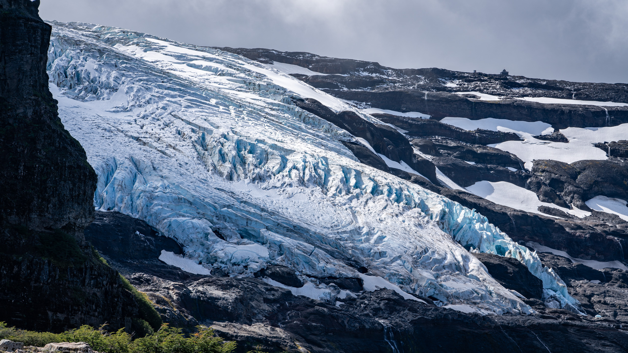 Es hat mittlerweile komplett aufgerissen, nur am Tronador, dem großen Berg vor uns hängen ein paar wenige Wolkenfetzen. Übrigens ist der Name Programm, denn dieser verweist auf Spanisch darauf, dass es öfters donnert und gewaltige Eis- und Wassermassen ins Tal donnern. Während unserer Wanderung und der anschließenden Stunde auf dem Aussichtspunkt, hören wir immer wieder lautes Donnern und sehen manchmal sogar kleine Lawinen. In der Nacht zuvor hat es wohl auch geschneit, was den Prozess vermutlich auch weiter ankurbelt. Beim Restaurant unten befindet sich ein großer Parkplatz, den sogar größere Busse anfahren. Doch auf dem Berg hier sind wir Mutterseelen-alleine und eventuell sogar die ersten an dem heutigen Tag, obwohl es bereits 16:00 ist, denn wir sehen keine anderen Spuren im sandigen Boden, abgesehen von unseren eigenen. Erst als wir dann wieder anfangen abzusteigen kommt ein anderes Pärchen auf das Plateau. Die Wanderung hat sich auf jeden Fall extrem ausgezahlt.