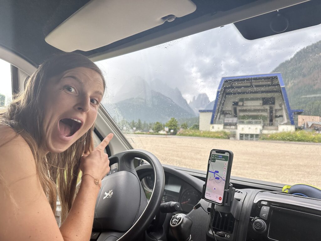 Wir genießen die Landschaft, tanken noch billig in Lienz und queren dann die Grenze nach Italien. Mittlerweile regnet es wirklich relativ beständig und so suchen wir uns in Sexten einen Parkplatz bei der Talstation der Seilbahn, auf dem wir auch übernachten werden.