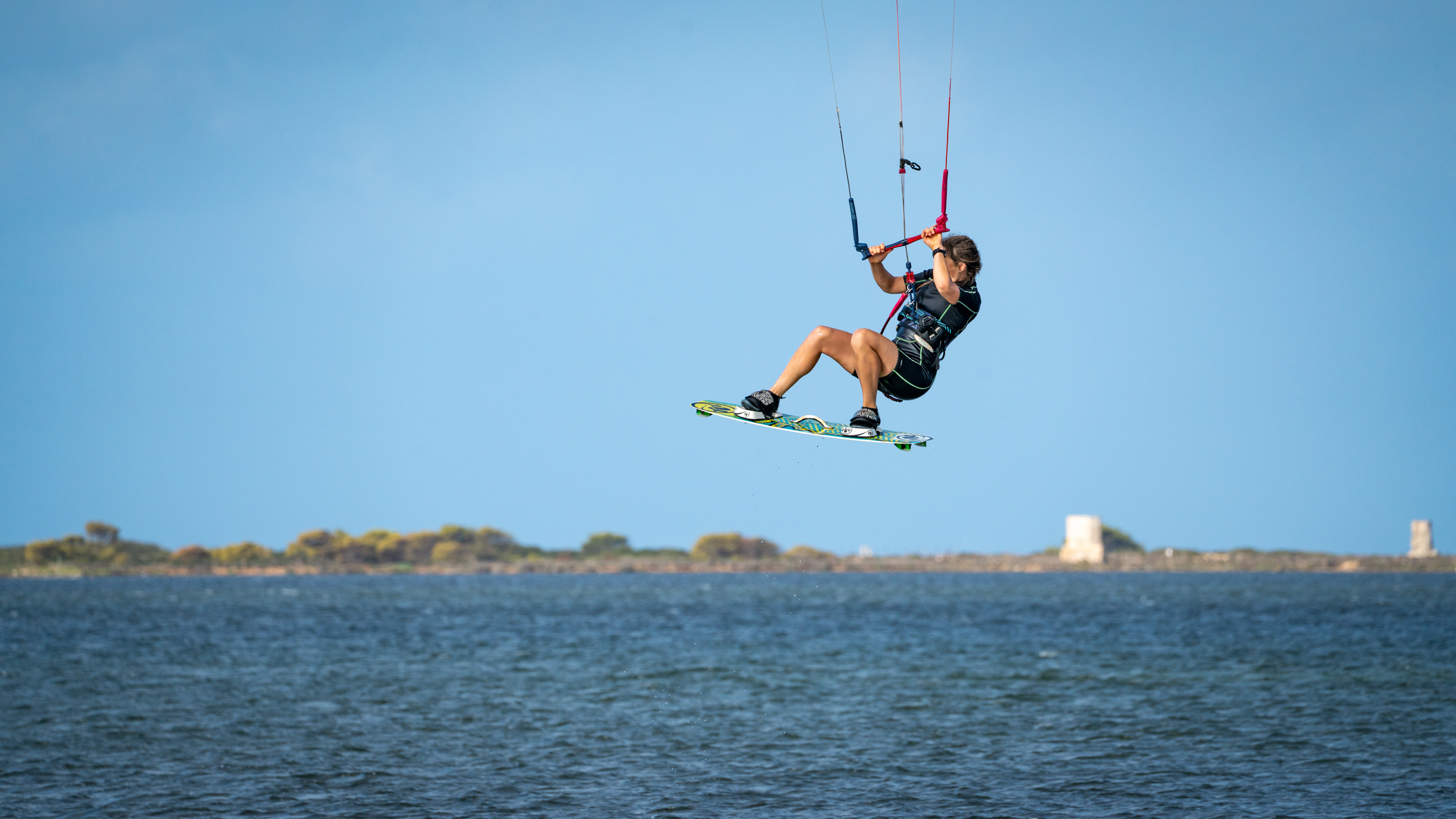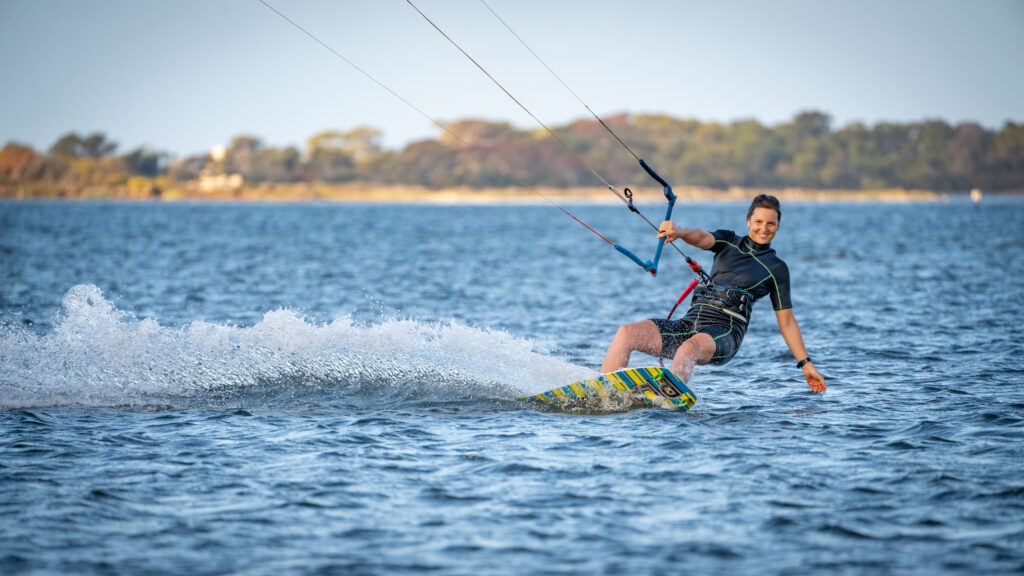 Es ist wieder ein super Wind vorhergesagt. In der Früh ist heute auch schon etwas mehr los am Wasser. Auch einige der StationsbetreiberInnen kommen schon vor der geplanten Öffnung um 11:30 und sind am Wasser draußen anzufinden. In der Früh habe ich auf der Suche nach einem Restmüll für mein Gackerlsackerl ein Geheimnis der Station gelüftet. Die große runde Tonne ist kein riesiger Müllkübel, sondern ein Wassertank. Die Aussage des Stationsbetreibers, dass er das Wasser eingekauft hat, macht nun auch mehr Sinn. Tatsächlich ist wohl die Dusche und das Klo nur a den Tank gekoppelt. Und wir haben uns schon gewundert, wieso das Wasser aus der Leitung hier noch schlechter schmeckt als das letzte Leitungswasser, das wir aus einer tatsächlichen Leitung bekommen haben. Es schmeckt jedoch auch nicht nach Chlor und nach unserer Entdeckung beschlossen wir sofort dieses nicht mehr zu trinken und uns schweren Herzens tatsächlich Wasser in PET-Flaschen im Supermarkt zu kaufen. Also gut, Lesson learned. Ich weiß nicht, wie viel Einbildung aufgrund meiner Entdeckung dabei ist, aber ich hatte am Vormittag leichte Bauchkrämpfe, Unwohlsein und Übelkeit. Ich war auch durchaus erleichtert, dass Eva heute zuerst mit dem Kiten starten wollte. Nach einer zweiten Sackerl-Runde ging es dann besser. Also tauschten wir und ich ging auch auf’s Wasser. Heute mit dem 15er und 12er, der Wind ist etwas schwächer als am Vortag.