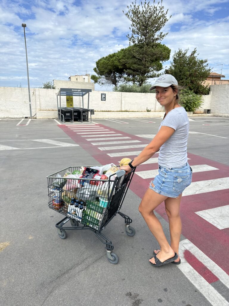 In meiner letzten Session vor der Mittagspause stürzt mir dann am anderen Ende der Lagune der Kite ins Wasser und wird vom Wind überwuzzelt. Dabei wickeln sich die Leinen um den Kite und schnüren das Tuch ein. Ich schaff es nicht, das Ganze zu entwirren bzw. will auch nicht riskieren, dass die Leinen das Tuch durchschneiden und packe so meine verwickelten Leinen, gemeinsam mit dem zerknüllten Kite und spaziere durch die ganze Lagune zurück zum Spot. Das war der wohl anstrengendste Teil des heutigen Tages, denn es sind schon ein paar hundert Meter und ist an vielen Stellen Brusttief und ich muss Brett und Kite auch noch mit mir herumbugsieren. 20 Minuten später bin ich gut zurück, aber etwas erschöpft und genervt. Danke an Eva, die mir dann die Leinen wieder in mühsamer Geduldsarbeit entwirrt. Die Mittagspause nutzen wir dann um zum Maxistore Deco einkaufen zu fahren, da uns sämtliche Lebensmittel zunehmend ausgegangen sind. Wir kaufen jede Menge ein um wieder für ein paar Tage auszukommen und fahren zum Spot zurück.