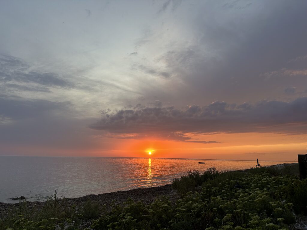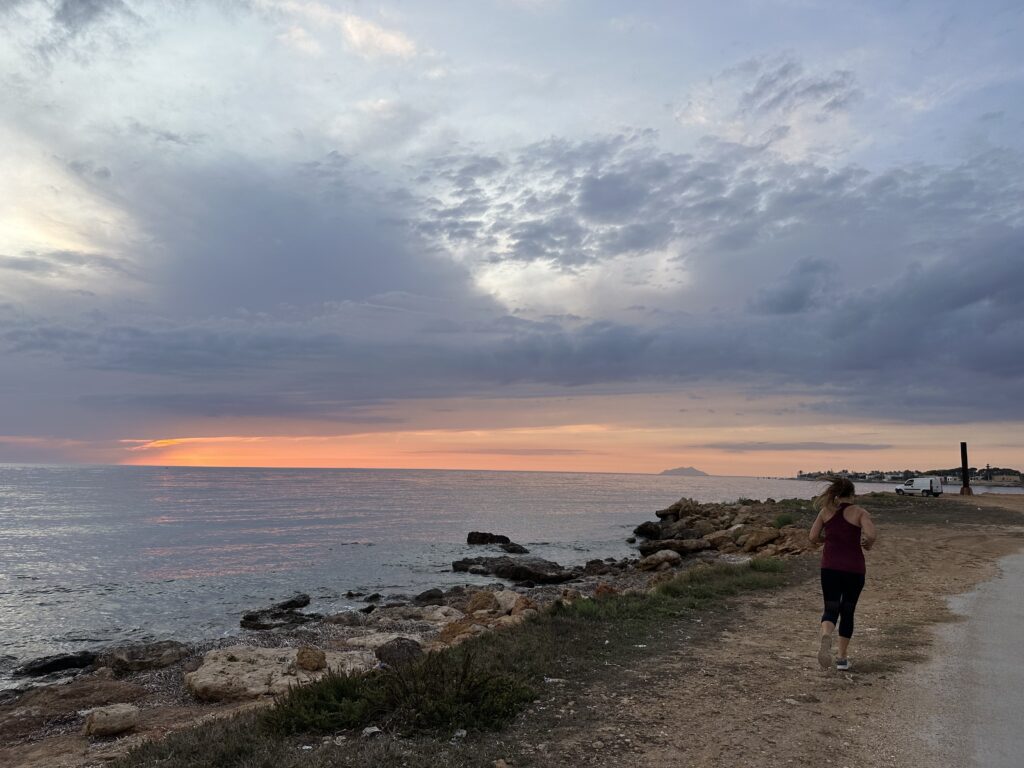 Kurz nach 16:00 machen wir uns dann wieder auf den Weg zurück, damit wir unseren Diagnosetermin mit dem Auto nicht verpassen. In der Werkstatt angekommen, müssen wir ein wenig warten und bekommen dann mitgeteilt, dass das AGR (Abgaserückführung) Ventil Probleme macht. Auf die Frage hin bzgl. unseres stark vibrierenden Ventilators meint er, dass die niedrige Geschwindigkeitsstufe scheinbar nicht funktioniert, wodurch der Ventilator dann mit voller Power anspringen muss – dabei sind die Vibrationen normal. Wir bekommen einen Einschubtermin für den nächsten Tag um 08:30, wo sie versuchen werden das Ventil zu reinigen um zu sehen, ob dies ausreicht. Das gleiche Prozedere habe ich selbst bereits gemacht vor etwa 3 Jahren, als wir den Bus gekauft hatten und den gleichen Fehler damals dann schon hatten. Erleichtert, dass wir aber Aussicht auf Reparatur und vor allem auch kein schwerwiegendes Problem haben, fahren wir dann wieder zurück zum Campingplatz. Wir beschließen in der Abendsonne bzw. zum Sonnenuntergang noch eine Runde am Meer entlang laufen zu gehen. Wir laufen 5km gemeinsam, davon 2,5km in die eine Richtung, ehe wir umdrehen. Danach hänge ich noch weitere 2,5km alleine in die andere Richtung dran und komme so gesamt auf 10km. Durch den dunklen Himmel ergibt sich eine sensationelle Abendstimmung. Es ist auch durchaus erstaunlich, wie viele der Einheimischen selbst zum Sonnenuntergang mit dem Auto an die Küste gefahren kommen und sich das Spektakel, zum Teil alleine oder auch in Gruppen, ansehen.