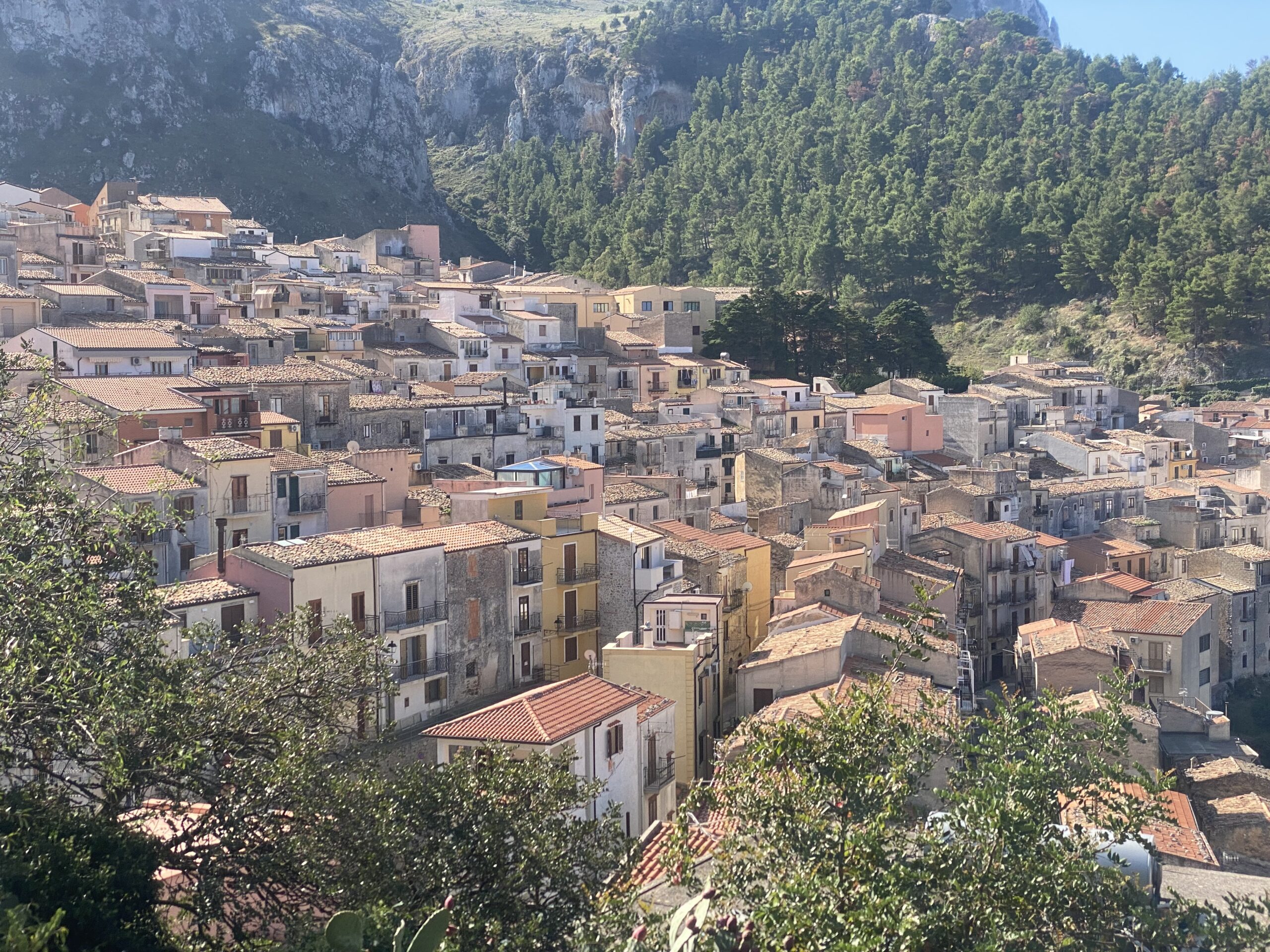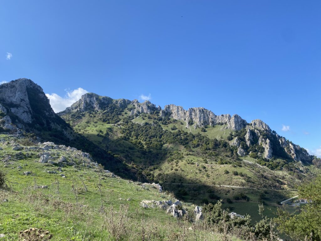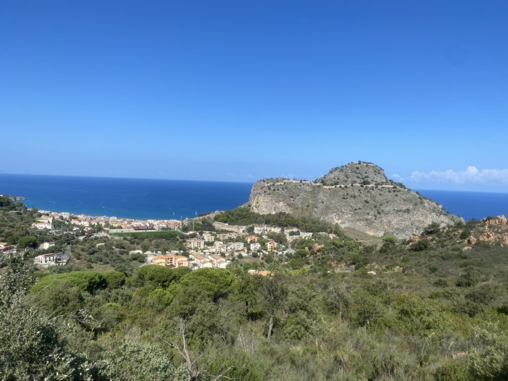 Gerade Lukas ist nicht mit dabei, wenn wir auch die schönen Ecken von Sizilien entdecken. Direkt vom Campingplatz weg starten wir in die Höhe und haben schnell immer schönere Meerblicke. Ebenso eröffnet sich uns immer schönere hügelige Landschaft, die zunehmend felsiger wird. Auch das Dorf oben auf 700hm wirkt bewohnter, man sieht hier endlich ein paar ältere Herren von einem Cafe sitzen und tratschen und es ist wirklich kaum Müll auf der Straße und in den Bergen. Die Steigung ist perfekt, so sind auch die 1000hm in guter Gesellschaft schnell geschafft und bald geht es mit noch lohnenswerteren Ausblicken auf die Küste und Cefalù wieder runter.