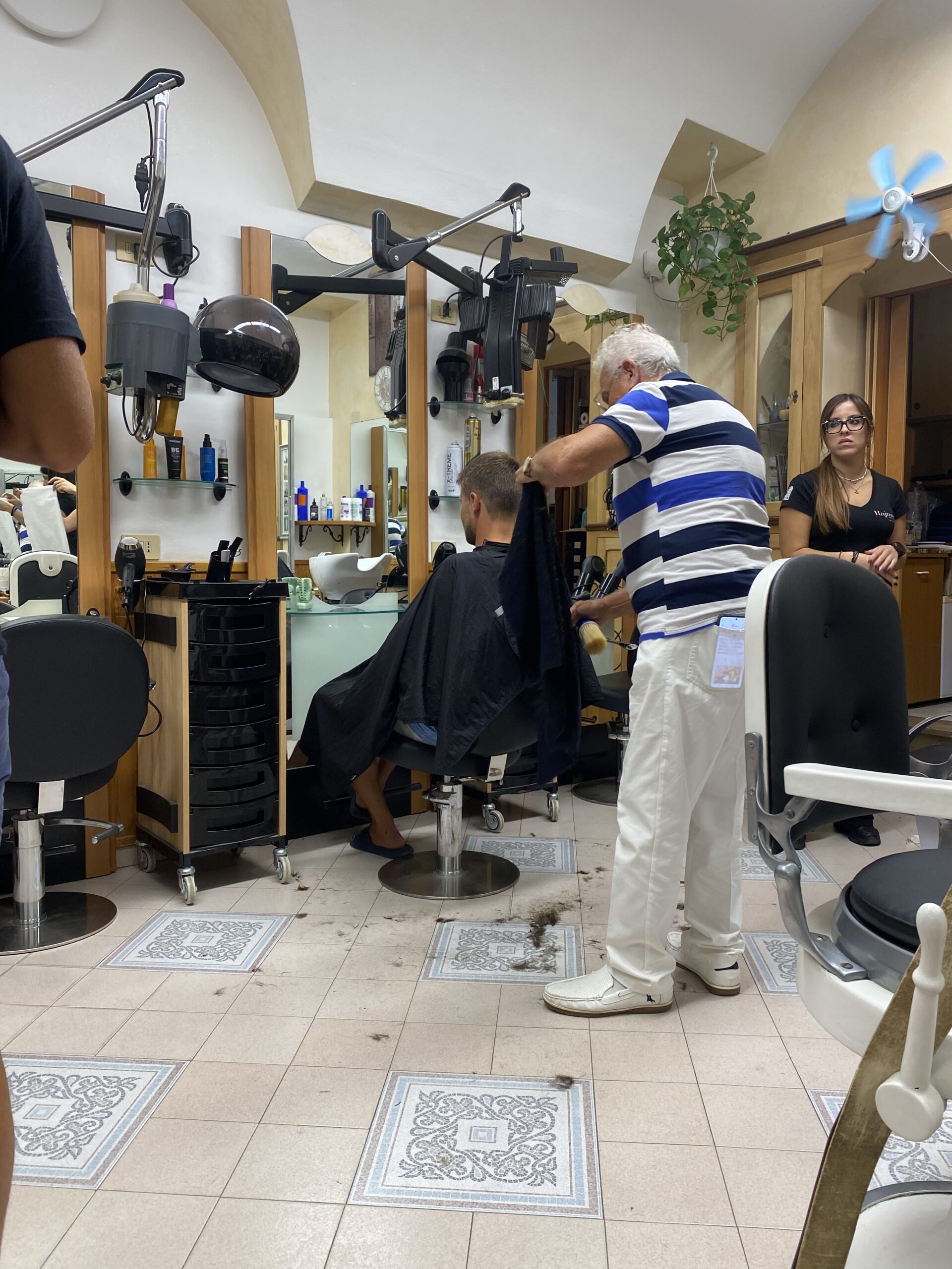 Als das Essen verspeist ist, gehe ich zum gleichen Friseur direkt gegenüber, bei dem Roman bereits war. Der 1942 geborene Senior schneidet mir die Haare. Verständigen tun wir uns mit Hand und Fuß und fetzen diversester Sprachen. Hauptsächlich aber durch Stille und seinem melodischen Summen, während er mir gewissenhaft, mit leicht Zitterenden Händen die Haare schneidet. Es wird kein perfekter Haircut, wie ihn Charles mir sonst verpasst, doch das Ergebnis ist durchaus okay. Roman und Sophie haben sich inzwischen noch ein Eis geholt und wir spazieren dann langsam wieder in Richtung Bus. Den Sonnenuntergang haben wir diesmal wohl verpasst, denn es ist auf einmal schon ziemlich dunkel.