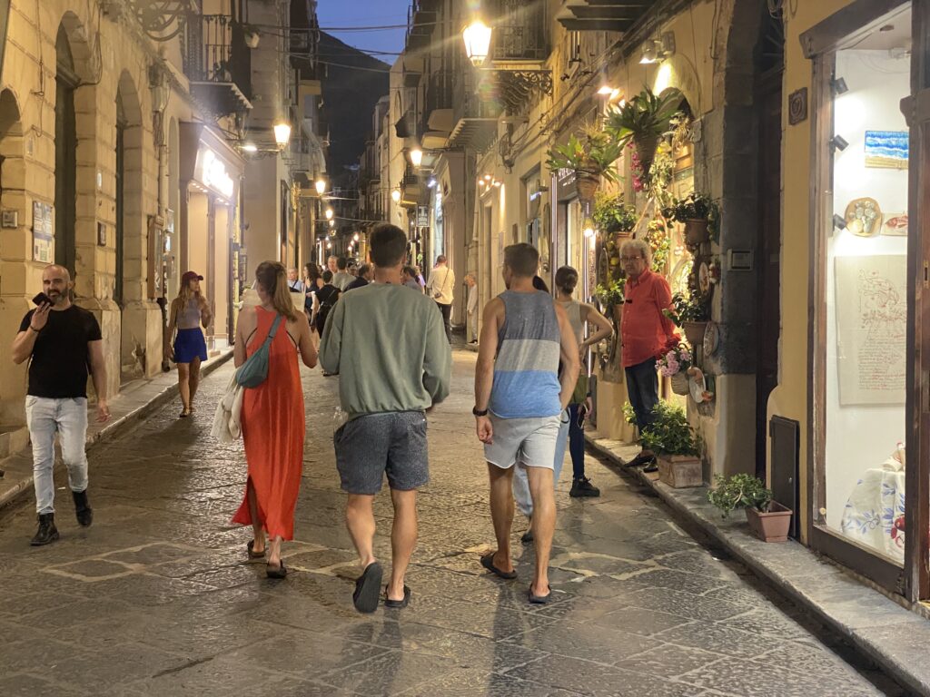 Jetzt wirklich einmal UrlaubsfeelingSalvadore, der alte HaarschneiderCefalù bei Dunkelheit