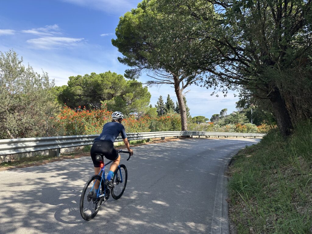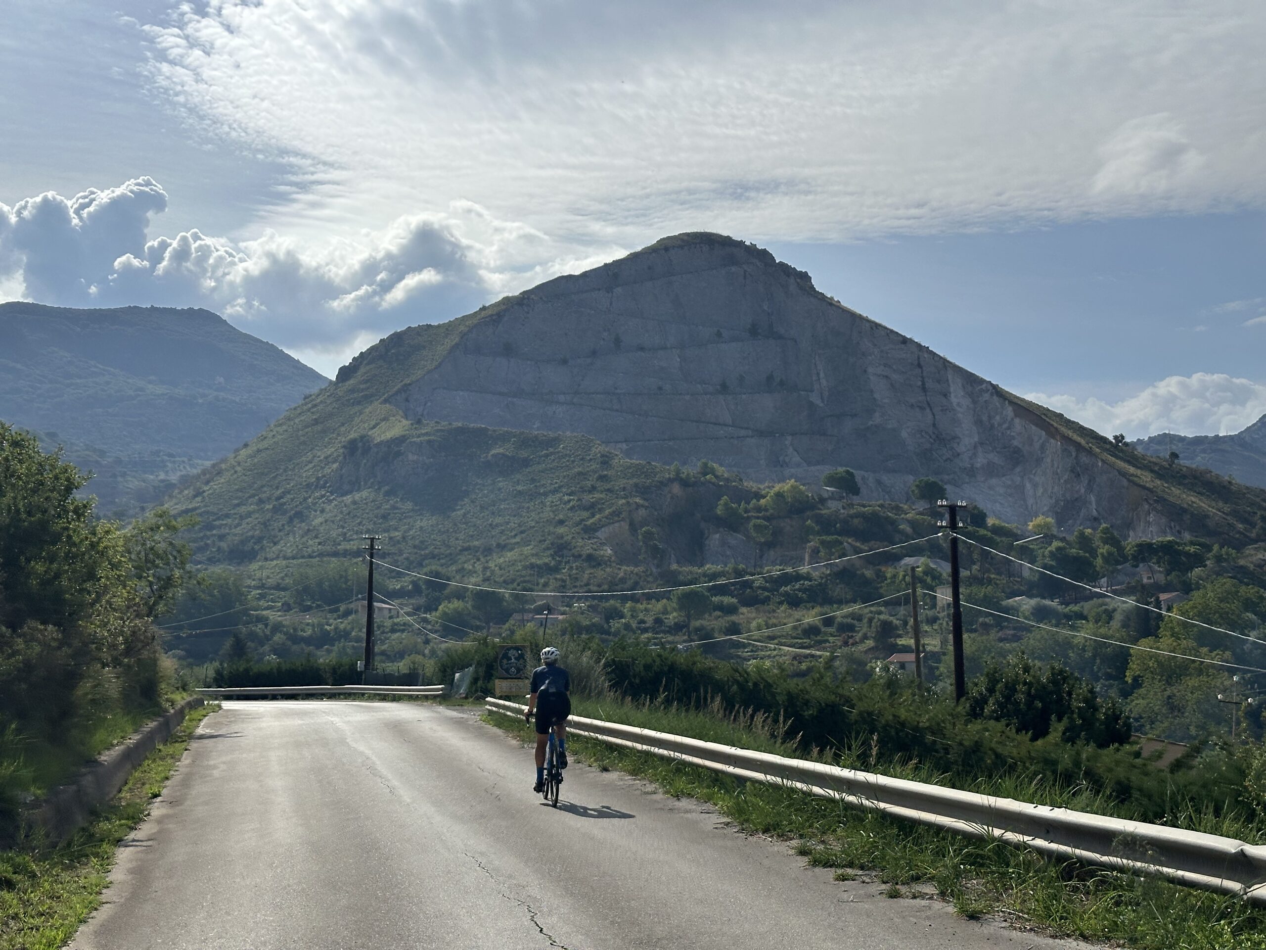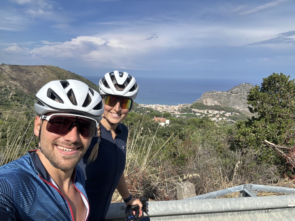 Wir wachen nach einer gemütlichen Campingplatznacht gegen 07:00 auf. Mein Fuß ist heute tatsächlich fast gänzlich abgeschwollen, nur die Rötung an der infizierten Stelle ist geblieben. Meine beiden Ärztinnen genehmigen mir heute aber schon eine Radfahrt und so starten Eva und ich nach dem Frühstück und nachdem wir bereits einen Teil unserer Reisevorbereitungen (Abwasser, Frischwasser, Müll, vorkochen etc.) erledigt haben, auf eine kürzere Rennradtour. Wir fahren direkt hinter dem Campingplatz in die Berglandschaft und treten ein paar Serpentinen hinauf. Die Straße schlängelt sich in die zum Teil mit Pinien bewachsenen Hügel hinein, vorbei an einigen Landwirtschaften. Eigentlich eine ganz nette Landschaft. Vor allem ist die kleine Straße so gut wie nicht befahren, was zum Radln echt top ist. Am Rückweg blicken wir auf Cefalu und das Meer hinab, die Stadt, in der wir gestern am Abend waren. Wir kommen auf 25km und 550 Höhenmeter und sind in etwas über einer Stunde wieder am Campingplatz zurück.