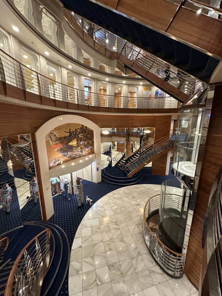 Das Verladen dauert leider ziemlich lange, obwohl es drei Autodecks gibt, die parallel beladen werden. So stehen wir wohl etwa eine Stunde im Stau, ehe wir in unseren Parkplatz eingewiesen werden. Als wir das Autodeck verlassen sind wir erneut überrascht. Uns erwartet ein offenes Stiegenhaus mit Lift und bei kurzer Inspektion des ausgehängten Plans sehen wir, dass es mehrere Restaurants, eine Cafeteria, ein Theater, ein Kino, Spielräume, Relaxräume und an Deck sogar ein Pool gibt. Aber nun wollen wir erstmal unser Zeug ins Zimmer geben und dann bald schlafen gehen, denn es ist schon 22:00. Wir holen uns unsere Zimmerkarte und suchen in einem Labyrinth aus ident aussehenden Gängen unsere Nummer. Unsere 4er Kabine, die wir nur zu zweit beziehen bietet zwei Betten, ein Nachtkasterl und ein kleines Badezimmer mit Klo und Dusche. Zwei weitere Personen könnten in Klapp-Stockbetten schlafen. Wir sind jedoch schon froh, nicht doch zu 4. ein Zimmer genommen zu haben, da es sonst wirklich extrem eng wäre. Nachdem wir unser Zimmer bezogen haben, gehen wir an Deck um das Auslaufen zu beobachten. Das verzögert sich aber mehr als 30 Minuten, weshalb im Endeffekt ich alleine an Deck bleibe und es abwarte, während alle anderen von uns schon schlafen gehen. Als dann die letzten LKW Anhänger eingeladen waren, lassen wir Palermo und Sizilien hinter uns und werden von einem kleinen Lotsenboot auf’s offene Meer begleitet. Dort nehmen wir rasch Fahrt auf und ich falle zuletzt dann auch ins Bett.
