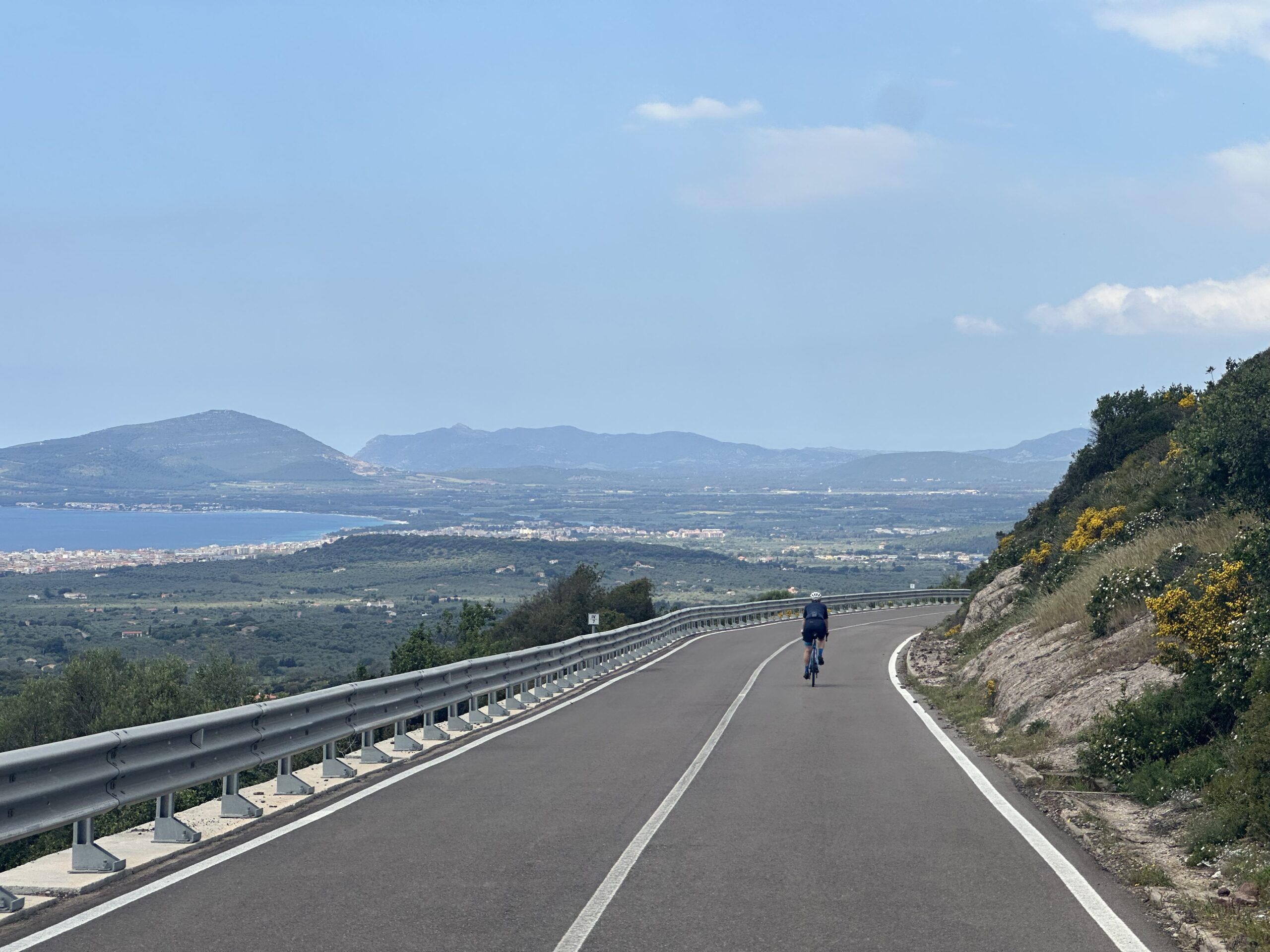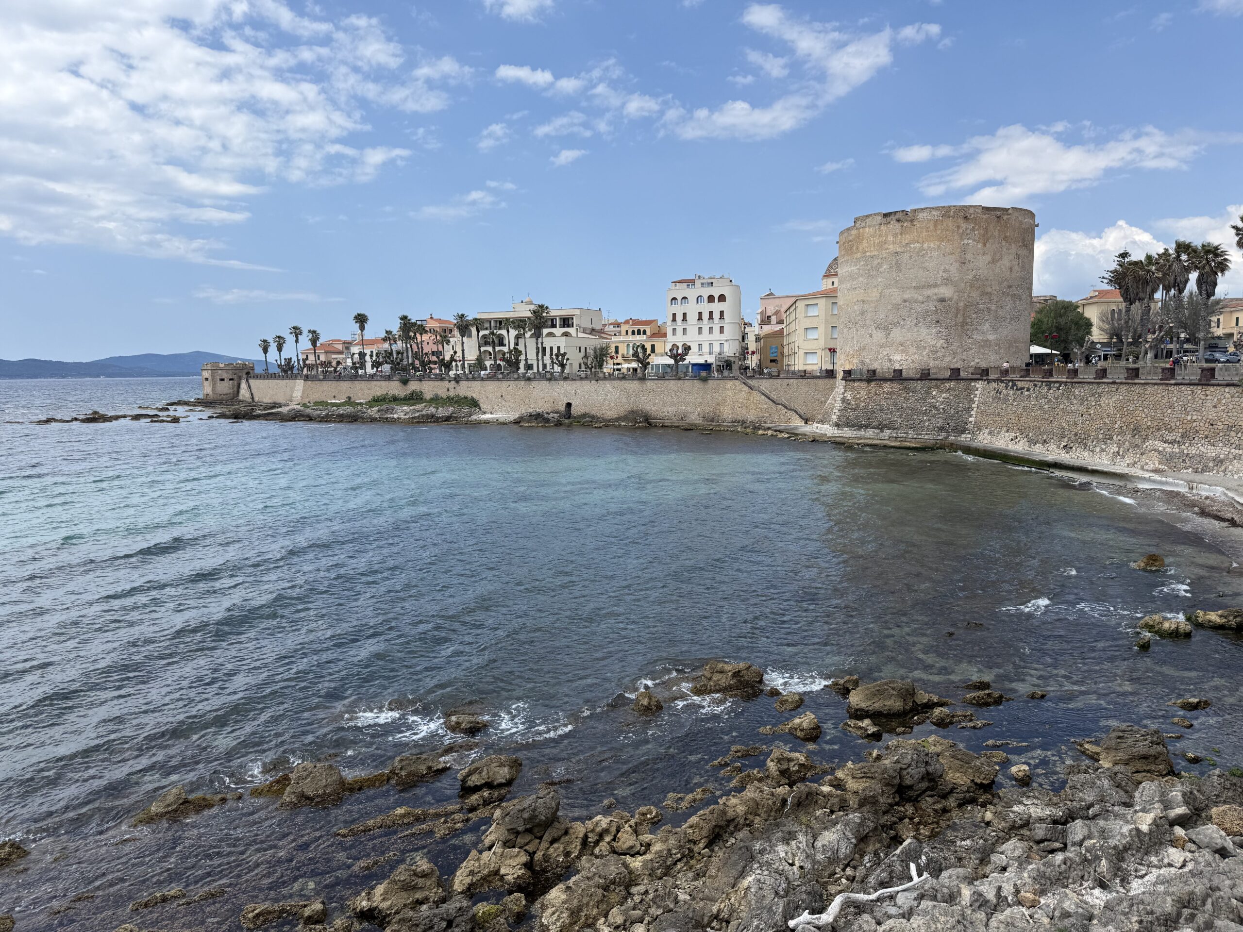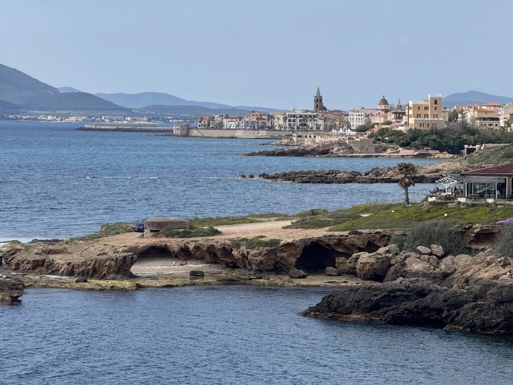 Unsere angestrebte Pausen-Stadt, Alghero, kommt schon bald in Sicht, als wir uns aus den Bergen entfernen und wieder einen wunderschönen Blick auf die Küste erhaschen.