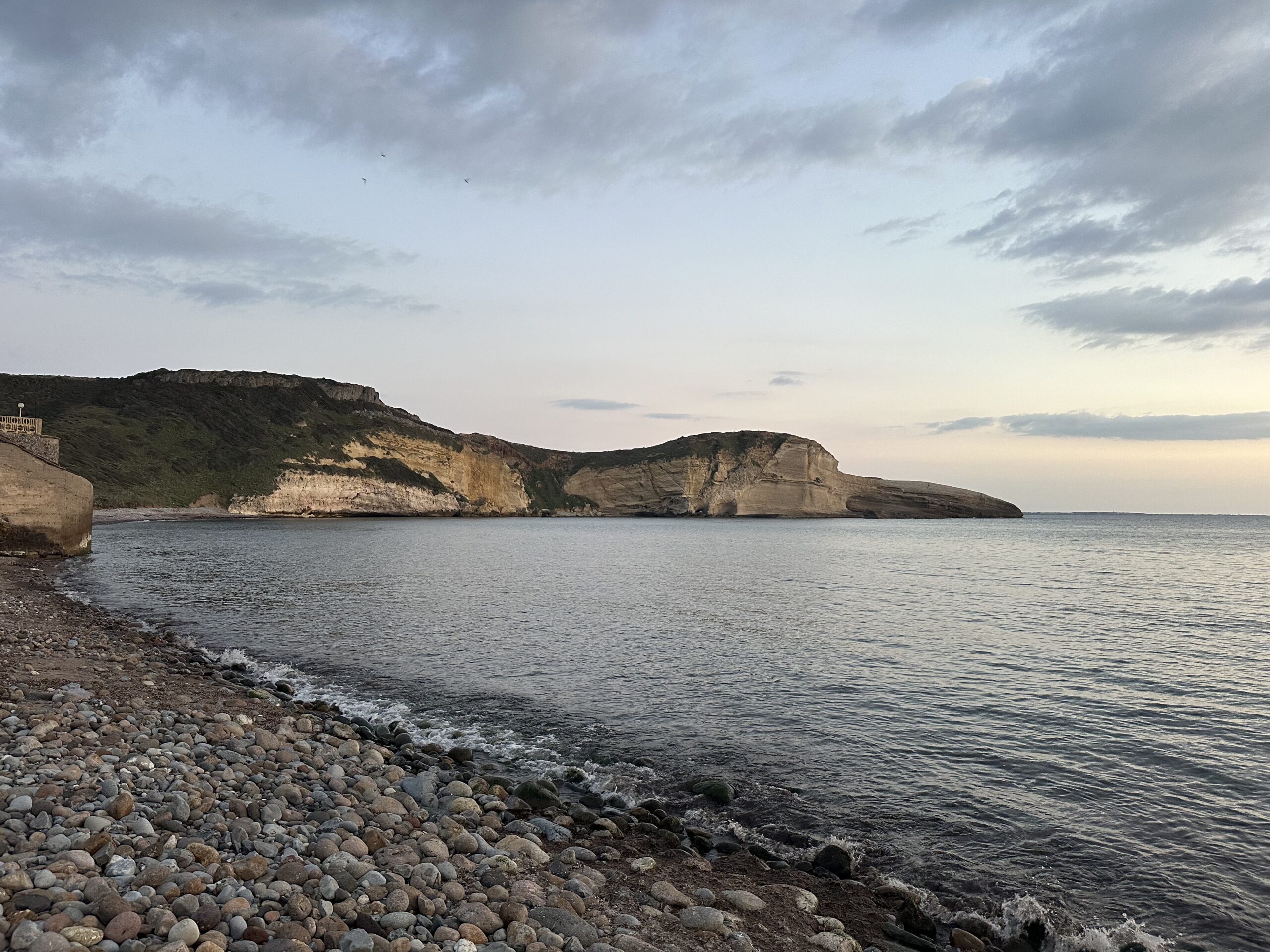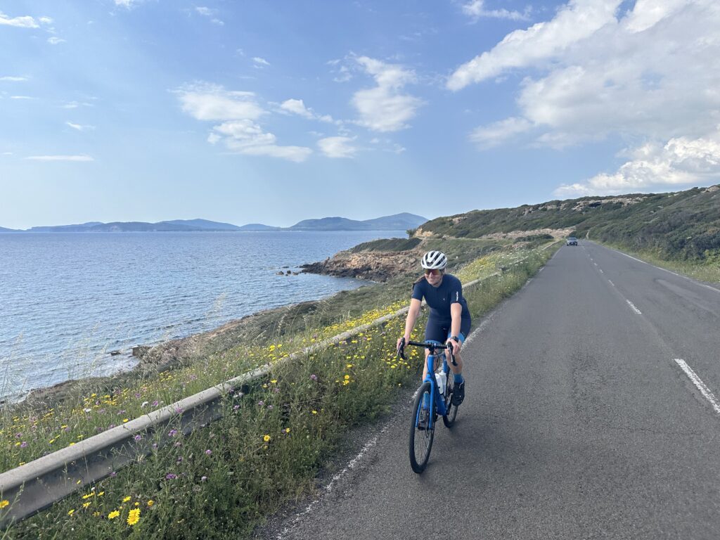 Auf den verbliebenen 40 km dürfen wir jetzt das Küstenpanorama genießen, denn wir haben einen Großteil der Höhenmeter bereits hinter uns. Zwar hat es im Vergleich zur Autofahrt etwas mehr zugezogen, aber so war immerhin auch jegliche Sonnenbrand-Gefahr gebannt. Auch hier geht es aber noch einige Male auf und ab. Am bereits bekannten Brunnen befüllen wir wieder unsere Wasserflaschen und es geht uns auch nach der bereits langen Fahrt noch erstaunlich gut. Auch wenn unsere Hintern vom Sattel sitzen nicht mehr übertrieben begeistert sind.