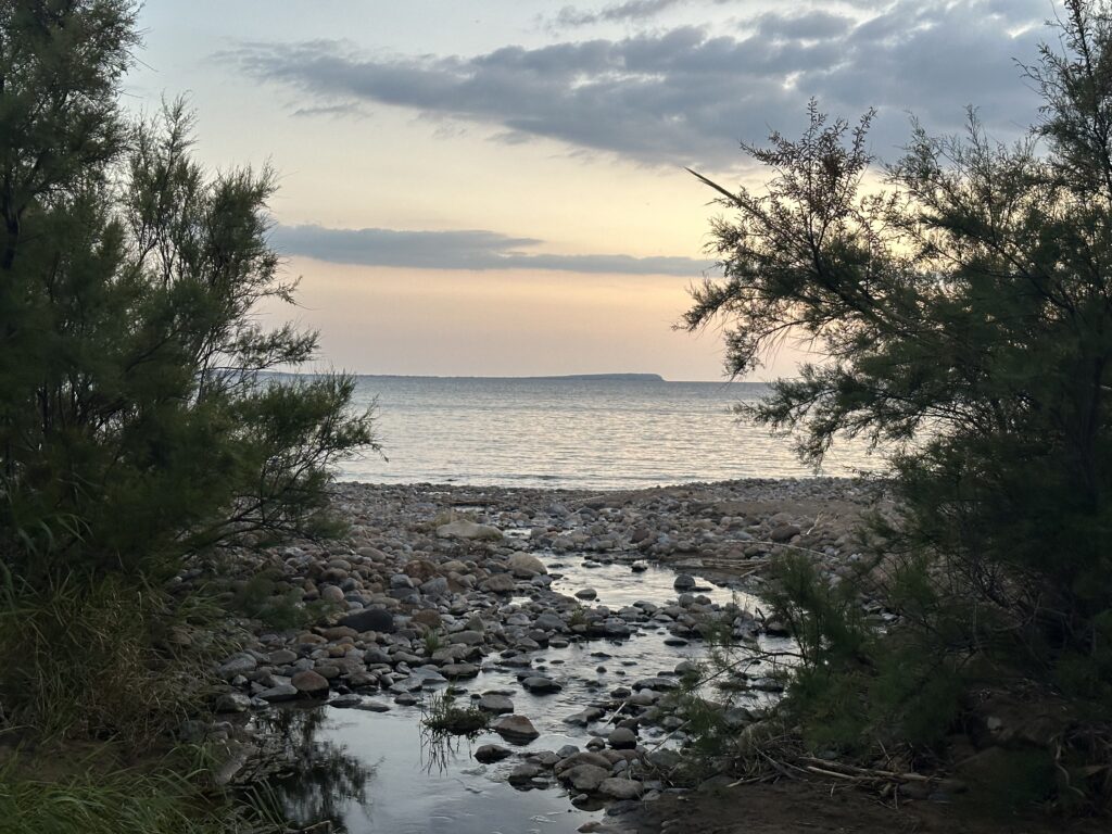 Recht lange finden wir keine geeignete Stelle. Doch dann sehen wir im Vorbeifahren in einem Dorf einen Parkplatz direkt in einer Bucht am Meer, wo bereits zwei andere Camper stehen. Wir stoppen auch, um zumindest noch schnell etwas kochen zu können. Doch bei einer kleinen Erkundungstour entdeckt Lukas dort auch einen kleinen Bach, der ins Meer mündet und uns für den heutigen Tag die perfekte Waschmöglichkeit bietet. So verzwicken wir zuerst die Tortellini und nehmen dann ein Bad im Meer und Bach und setzen anschließend unsere Reise Richtung Süden noch für eine weitere Stunde in der Dunkelheit fort.