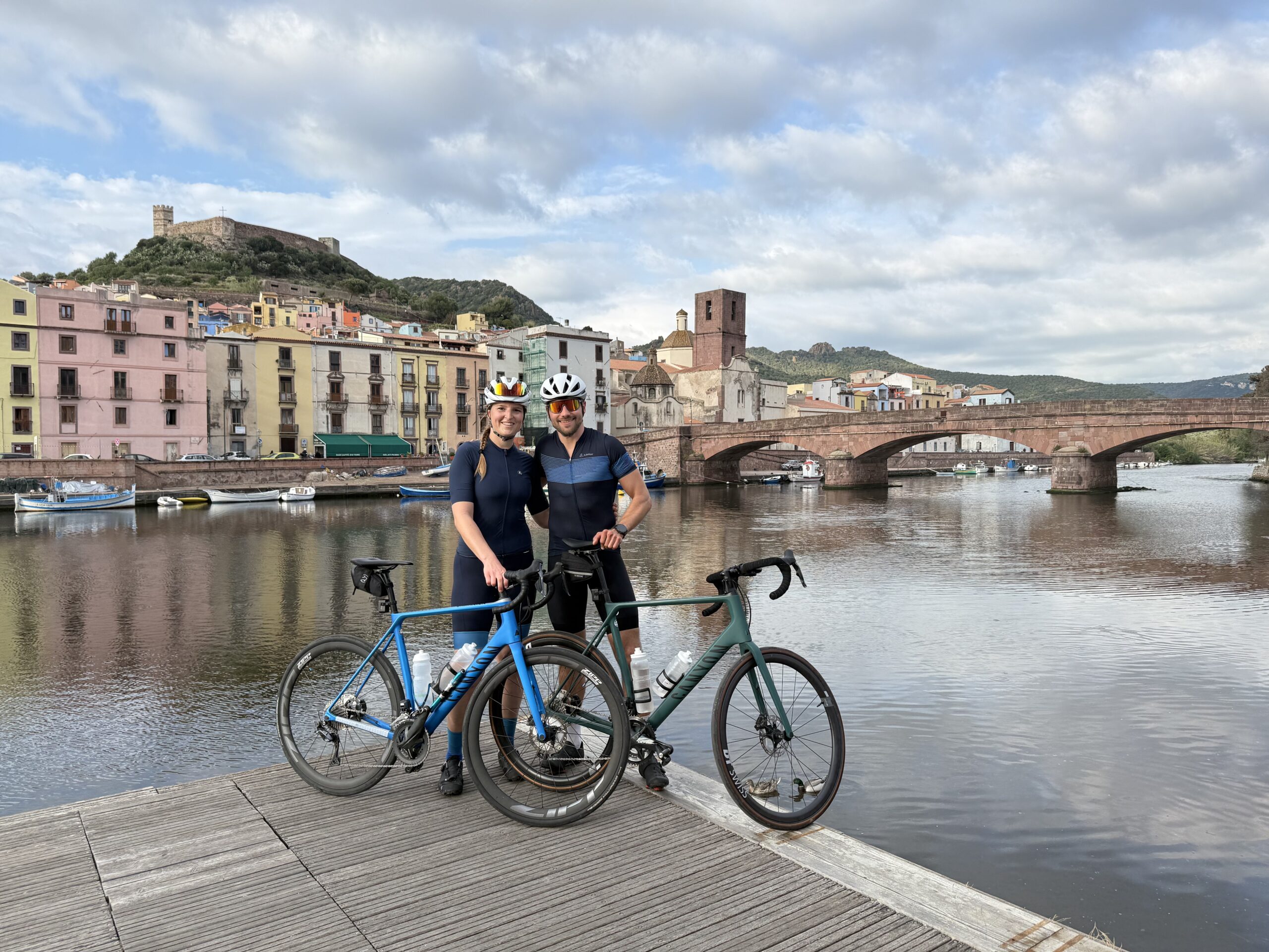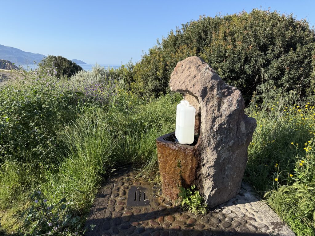 Wir wachen nach einer herrlich ruhigen Nacht gegen 7:00 Uhr auf und werfen einen letzten Blick auf diesen tollen Spot und Schlafplatz. Dann setzen wir uns hinter das Steuer und brechen in Richtung Süden auf. Schon gestern haben wir für den heutigen Tag eine vielversprechende, aber eventuell auch intensive Radtour herausgesucht. Der Startpunkt der Tour ist in Bosa, etwa eine Stunde Fahrt in südliche Richtung, an der Westküste. Bereits auf der Anfahrt durchfahren wir den Küstenteil unserer Tour und unsere Vorfreude steigt enorm an – die Straße scheint gut, aktuell ist kaum Verkehr und die Ausblicke sind einfach magisch. Außerdem finden wir entlang des Weges einen Brunnen der von Frischwasser aus den Bergen nebenan gespeist wird. Natürlich nutzen wir die Gelegenheit gleich, um unsere schon zur Neige gehenden Wasserkanister (nur noch 10 von 51l) wieder anzufüllen. Auch bei der Grauwasserentleerung haben wir hier kein gänzlich schlechtes Gewissen, weil das Wasser mit anständiger Flussrate direkt ins Meer rinnt. So schnell sind unsere Kanister wahrscheinlich noch nie gefüllt worden.