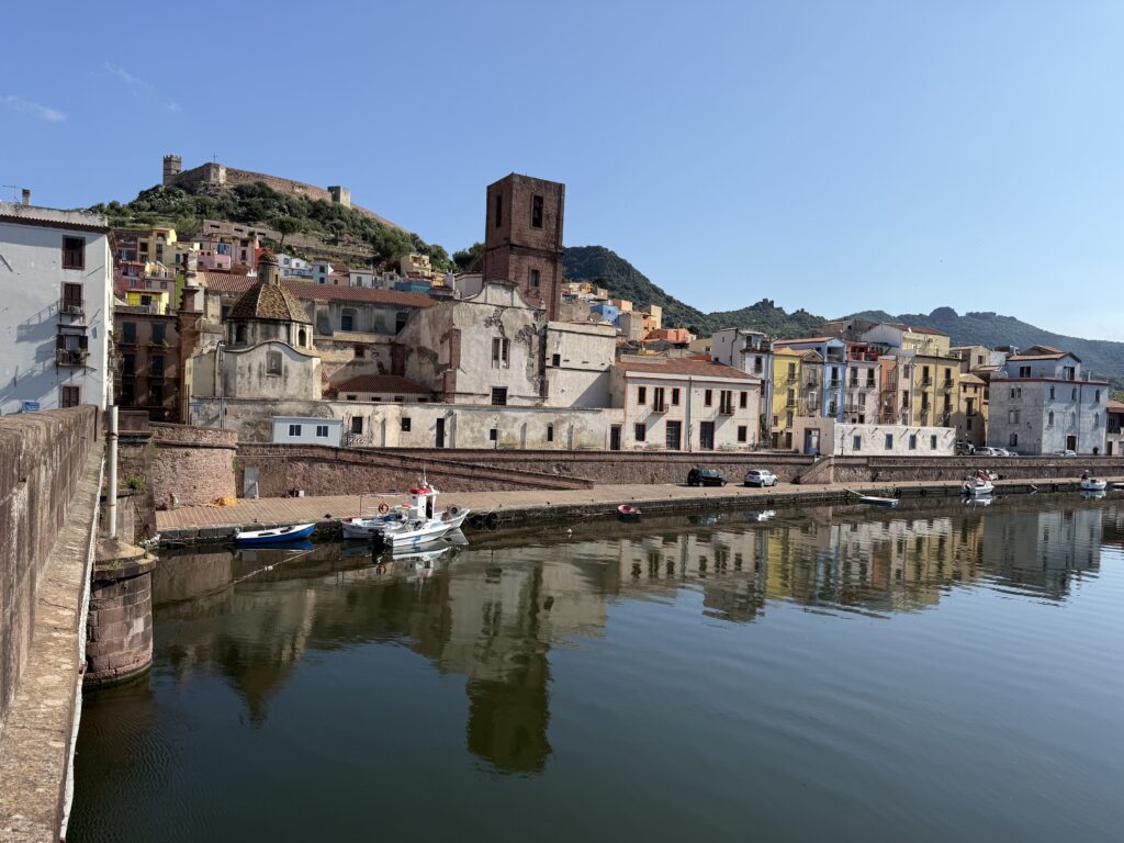 In Bosa ist recht bald ein Parkplatz gefunden, doch unsere Körper schreien noch nach Koffein. Deswegen spazieren wir schon jetzt durch das malerisch bunte Städtchen und finden im Zentrum am Fluss ein Café, wo wir 2€ pro Café Americano (Verlängerter) zahlen.