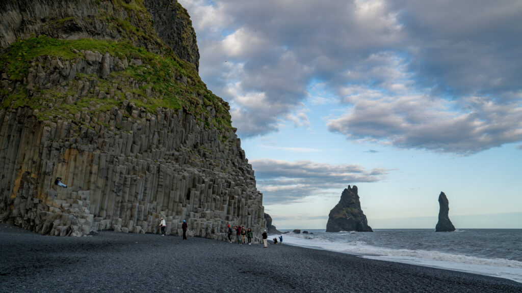 Nach einer kurzen Pause und Stärkung nutzen wir das Abendlicht (das in Island ja Stunden dauert) für einen letzten Ausflug: Wir fahren Richtung Westen zum berühmten Reynisfjara-Strand mit seiner beeindruckenden Hálsanefshellir-Höhle.