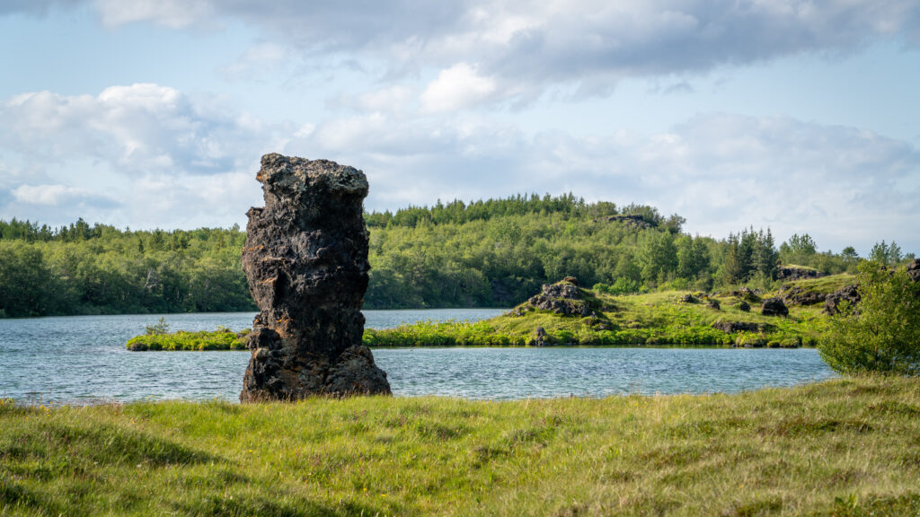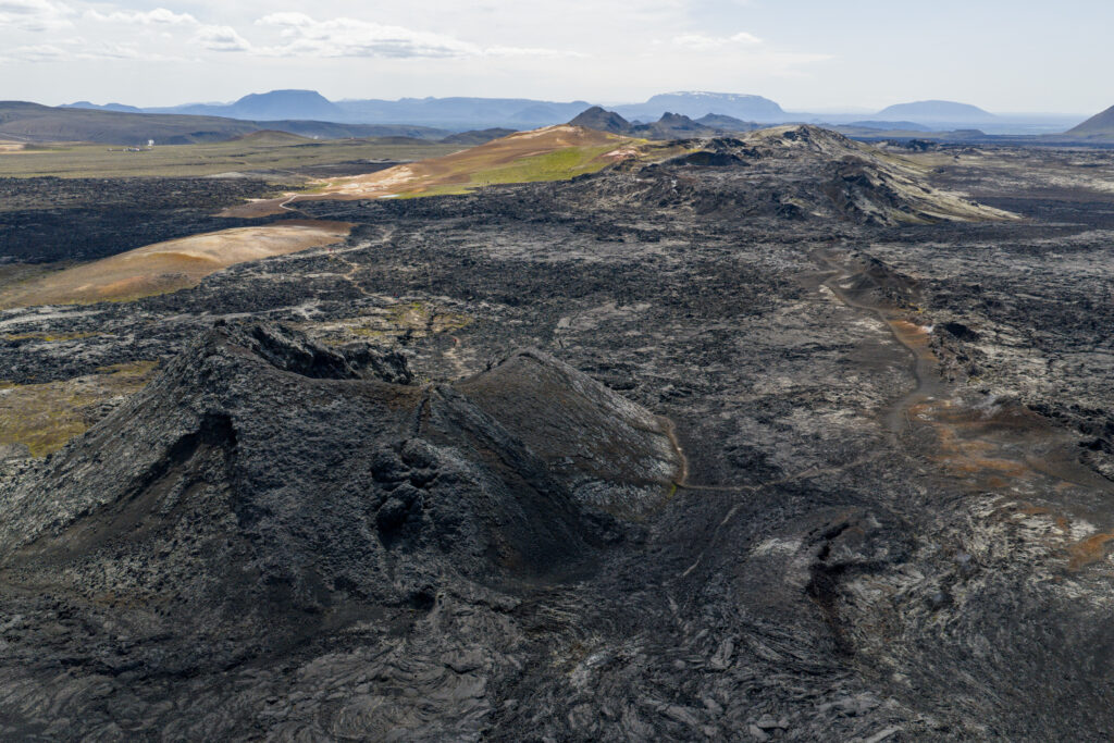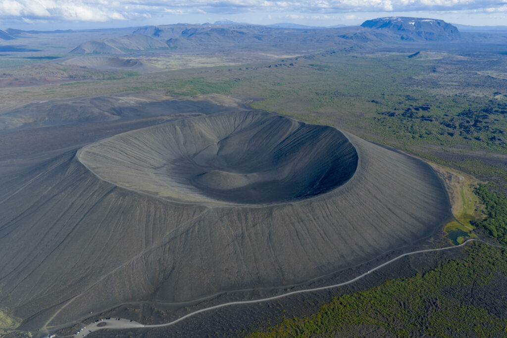 Auf dem weiteren Weg stoppen wir kurz am Fuß des Hverfjall, verzichten aber aus Zeitgründen auf den Aufstieg und lassen stattdessen die Drohne fliegen. Danach fahren wir entlang der Ostseite des Sees weiter nach Norden, zurück Richtung Unterkunft.