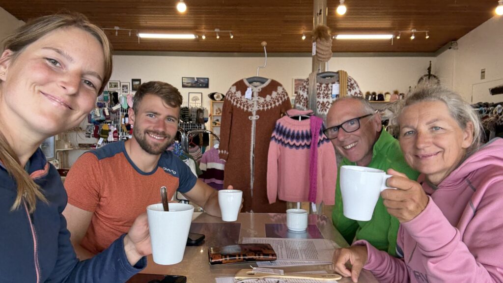 Gestärkt geht die Fahrt weiter. Unser nächster Halt ist ein Café mit integriertem Kunst- und Handwerksshop. Beinahe hätten wir dort ein Schaffell gekauft, doch die Vernunft siegt – es wird nur ein Kochlöffel für Mama und eine Runde Tee und Kaffee.