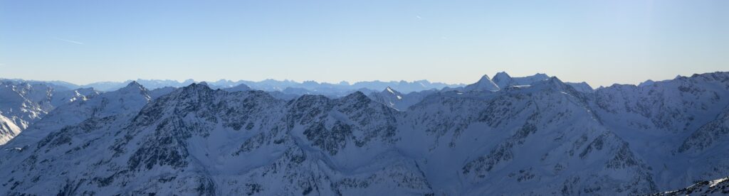 Lukas war so begeistert von Sölden, dass wir dort nochmal rüberstarten. Diesmal sind wir schon kurz nach 8.00 im Lift und genießen bei aufgehender Sonne und wolkenlosem Himmel die traumhafte Bergkulisse und frisch präparierten Hänge. Wir versuchen die Carving-Tipps aus dem gestrigen Youtube-Snowboardvideo anzuwenden, die schon gleich wieder einen Unterschied machen, aber der Schnee ist noch nicht wirklich weich genug.