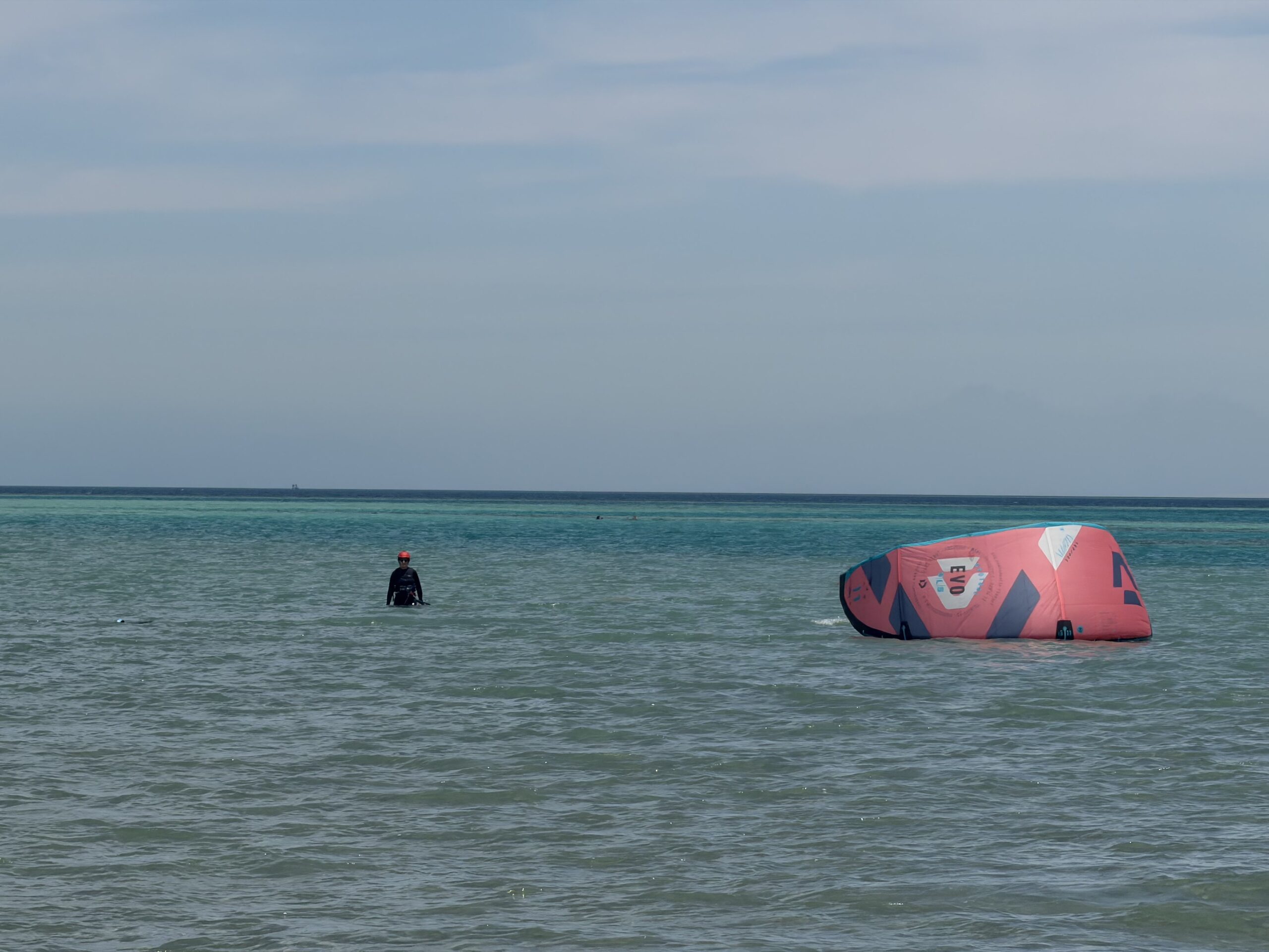 Bald fällt mir der Kite wieder ins Wasser und jetzt schaffe ich es nichtmal im Stehbereich, ihn in die Höhe zu kriegen.
