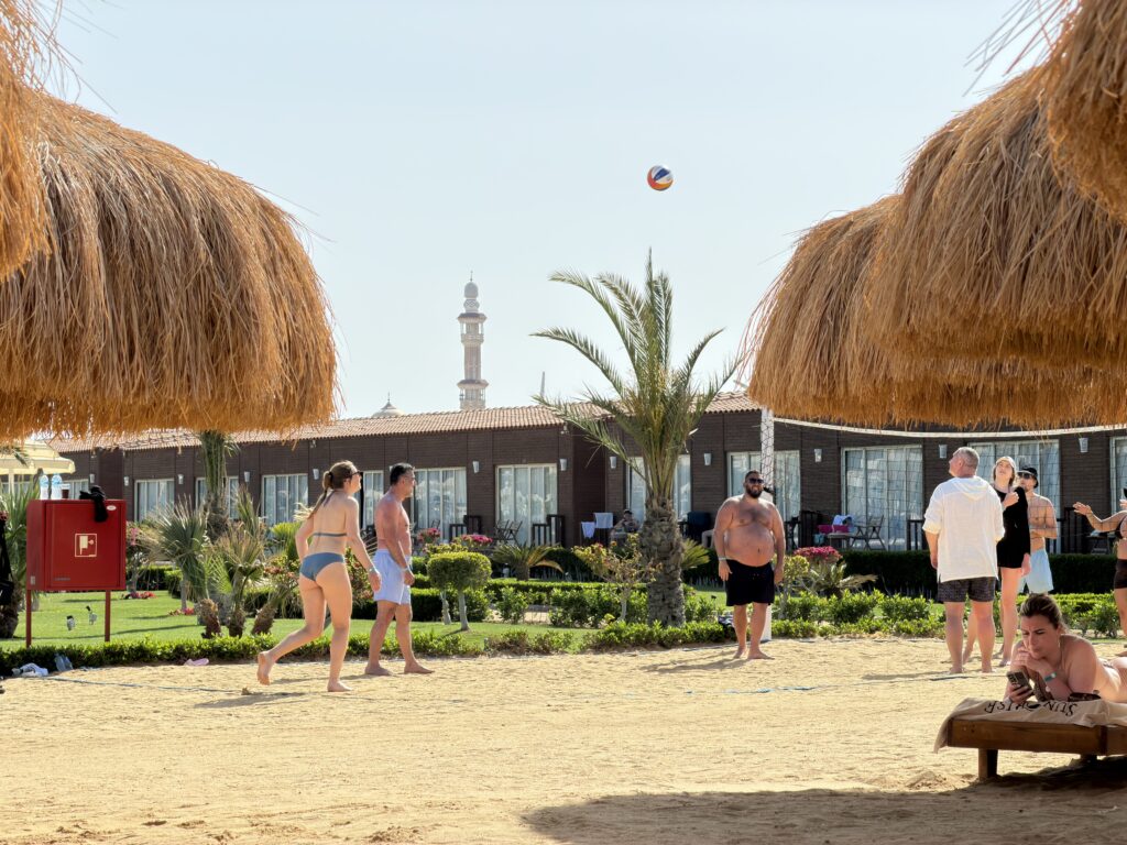 Endlich komme ich auch zum organisierten Volleyball-Spiel um 16:00 – es beginnt sehr lustig, weil eine starke Gruppe startet. Allerdings gesellen sich immer mehr mäßige Spieler dazu und guten Spieler:innen nehmen teils reißaus. Dennoch ist es trotzdem witzig mit den unterschiedlichen Nationalitäten, von denen einige nur mäßig Englisch sprechen. Es ist auch ein Verständigen mit Händen und Füßen.