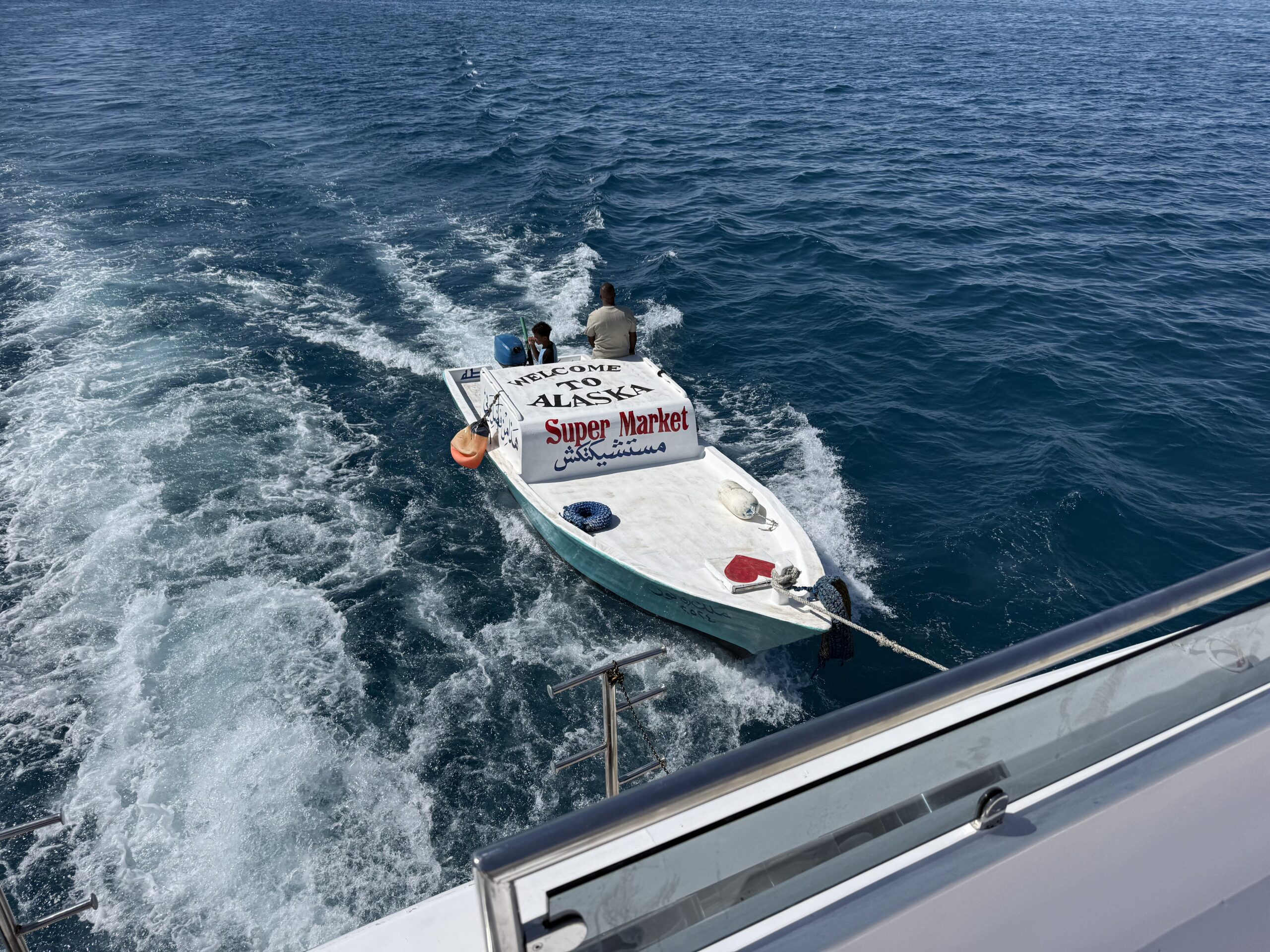 Als wir wieder an Deck ankommen, ist das Mittagessen bereits angerichtet. Reis, Nudeln, Gemüse in Tomate und reichlich Salate sättigen uns. Der Tauchspot war nicht allzu weit von Hurghada und so sind wir recht bald wieder an Land und werden durch die aufgeheizte Stadt zurück ins Hotel geshuttled.