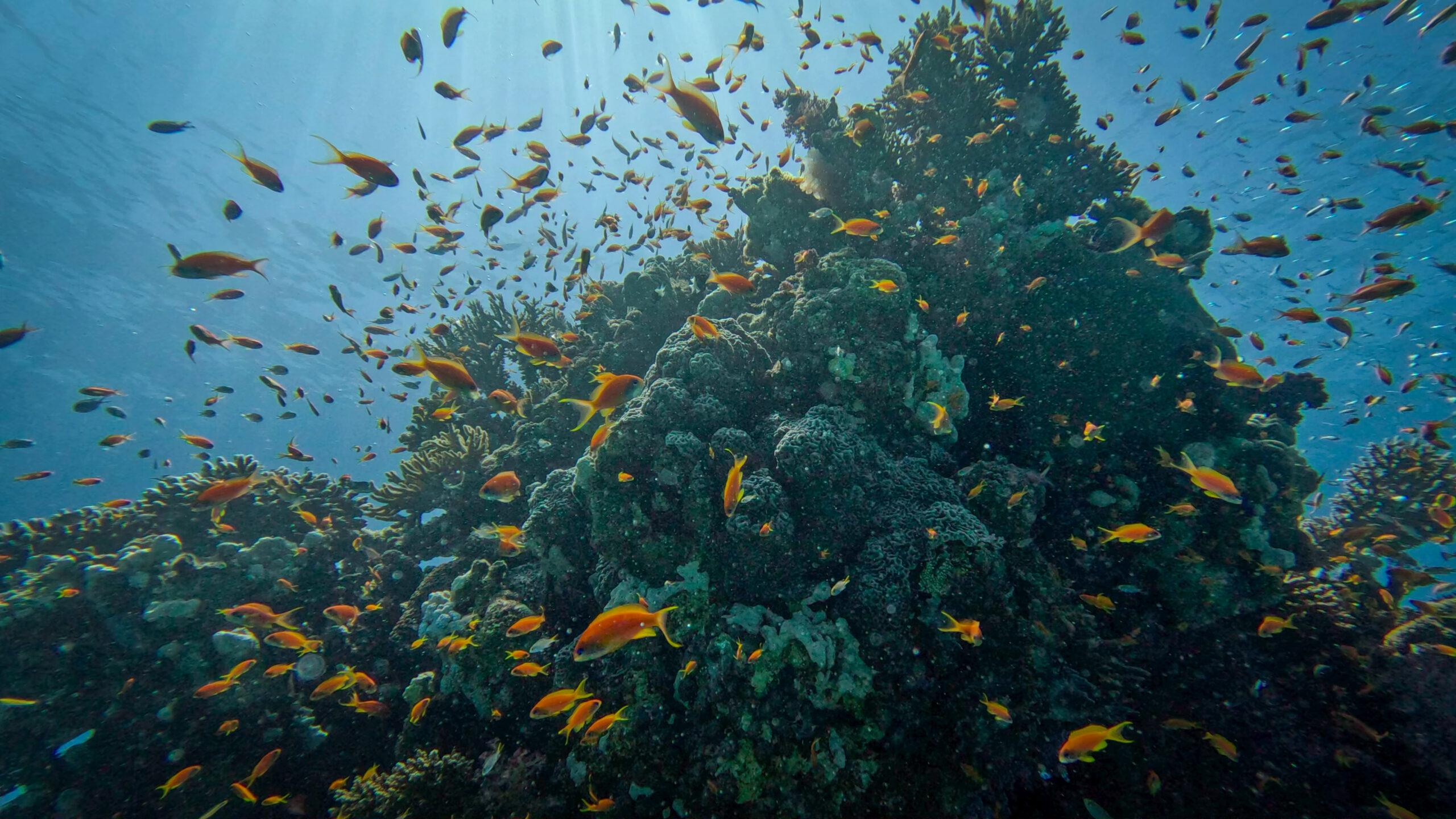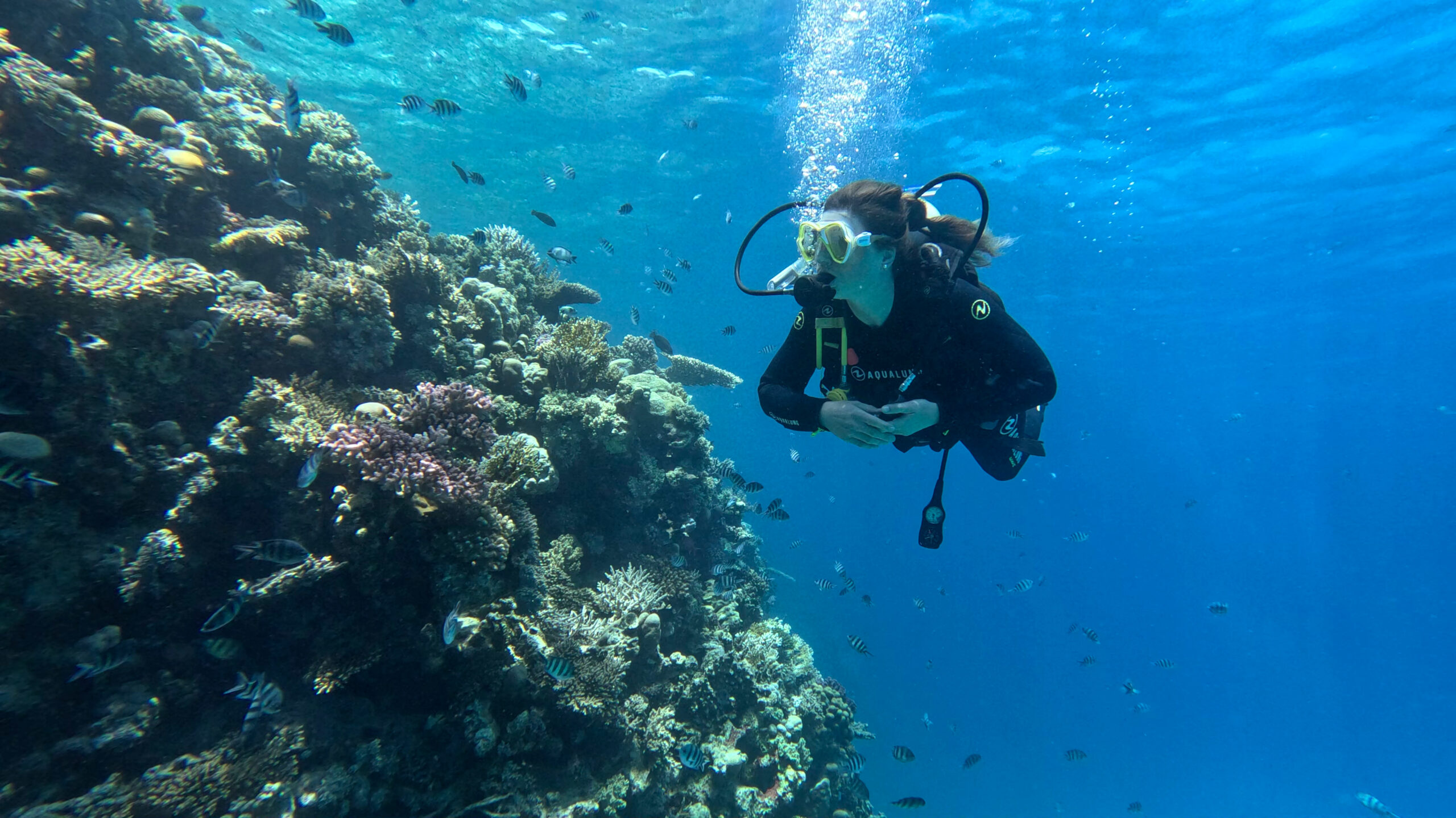 Es dauert eh nicht lange, sind die Taucher wieder zurück und wir starten zum Riff des Tages. Die letzten Meter werden wir schon von einem Delfin begleitet. Am Spot, rein in den Neopren, Buddy Check und ab ins Wasser. Es läuft alles glatt, aber die ersten Minuten braucht es schon wieder, um ins richtige Atmen und Gleichgewicht zu kommen und sich an Maske und Atemgerät zu gewöhnen. Aber es wird gleich wieder zur Routine und wir können uns auf die Unterwasserwelt konzentrieren. Nur meine Brille läuft trotz Seifenlauge vor dem Reinspringen leider ständig an.